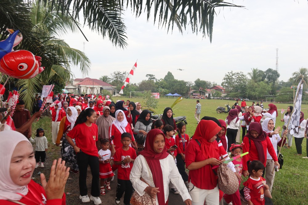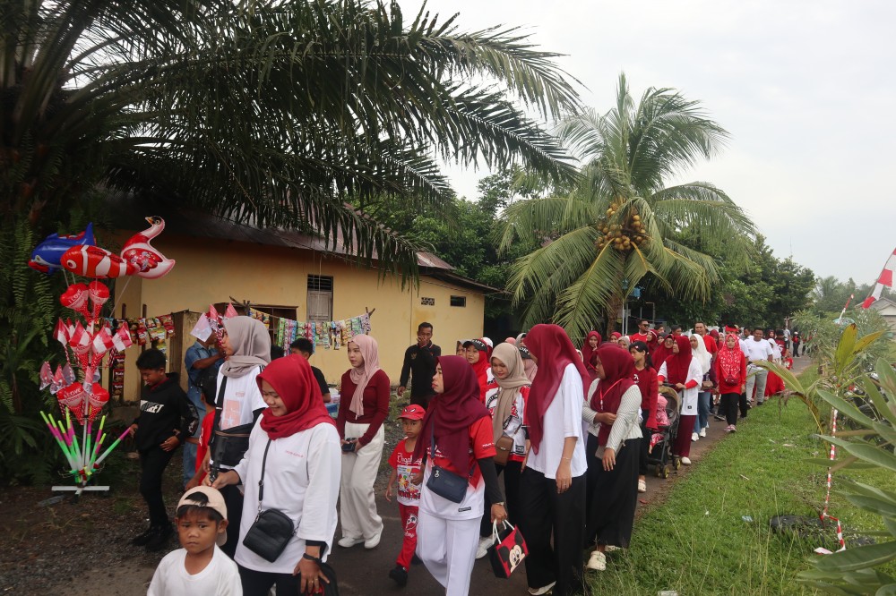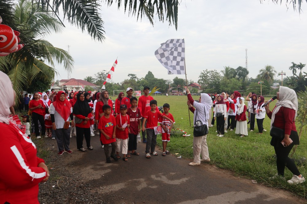 Suasana kemeriahan tampak di Desa Banyu Irang, Kecamatan Bati-Bati, saat ratusan warga mengikuti kegiatan Jalan Sehat dalam rangka memperingati Hari Ulang Tahun ke-80 Kemerdekaan Republik Indonesia.