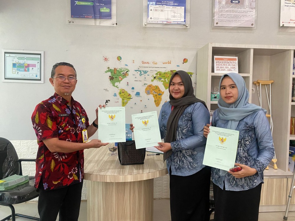 Kantor Pertanahan (Kantah) Kabupaten Tanah Laut (Tala), Kamis (13/2/2025) menyerahkan sertifikat Program Pendaftaran Tanah Sistematis Lengkap (PTSL) untuk warga Desa Banyu Irang, Kecamatan Bati-Bati di Kantor Kantah Tala.