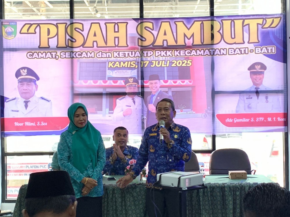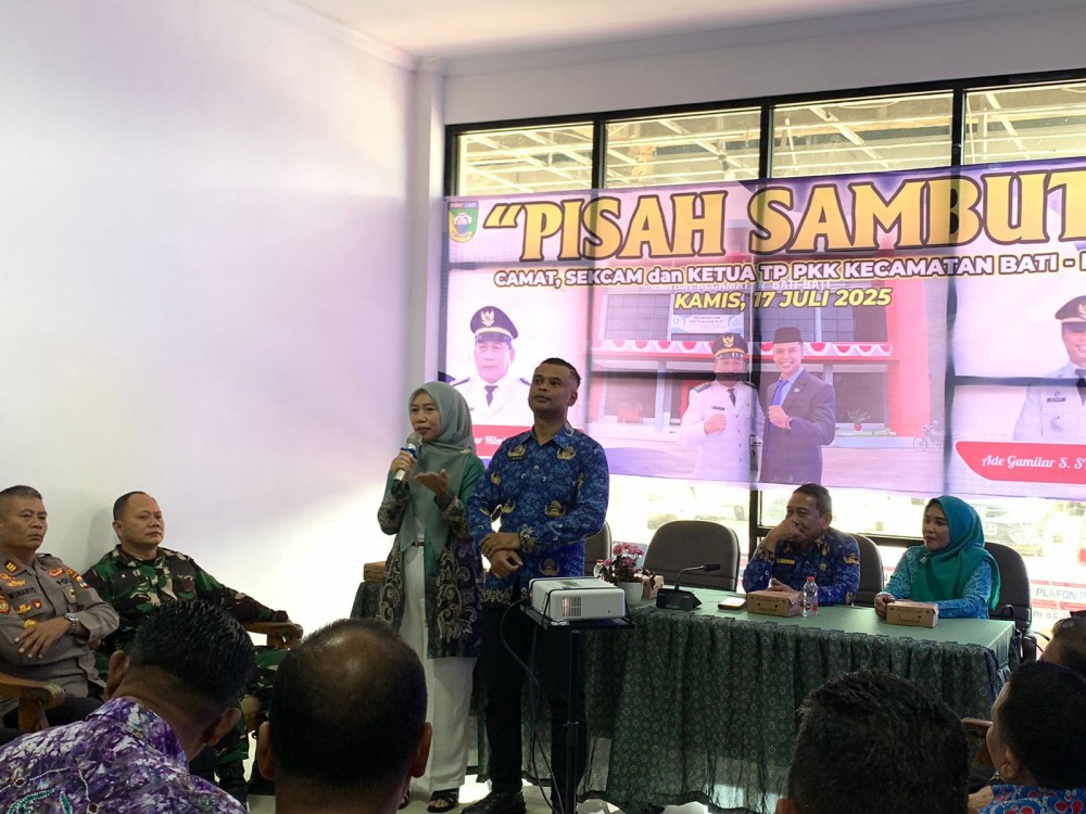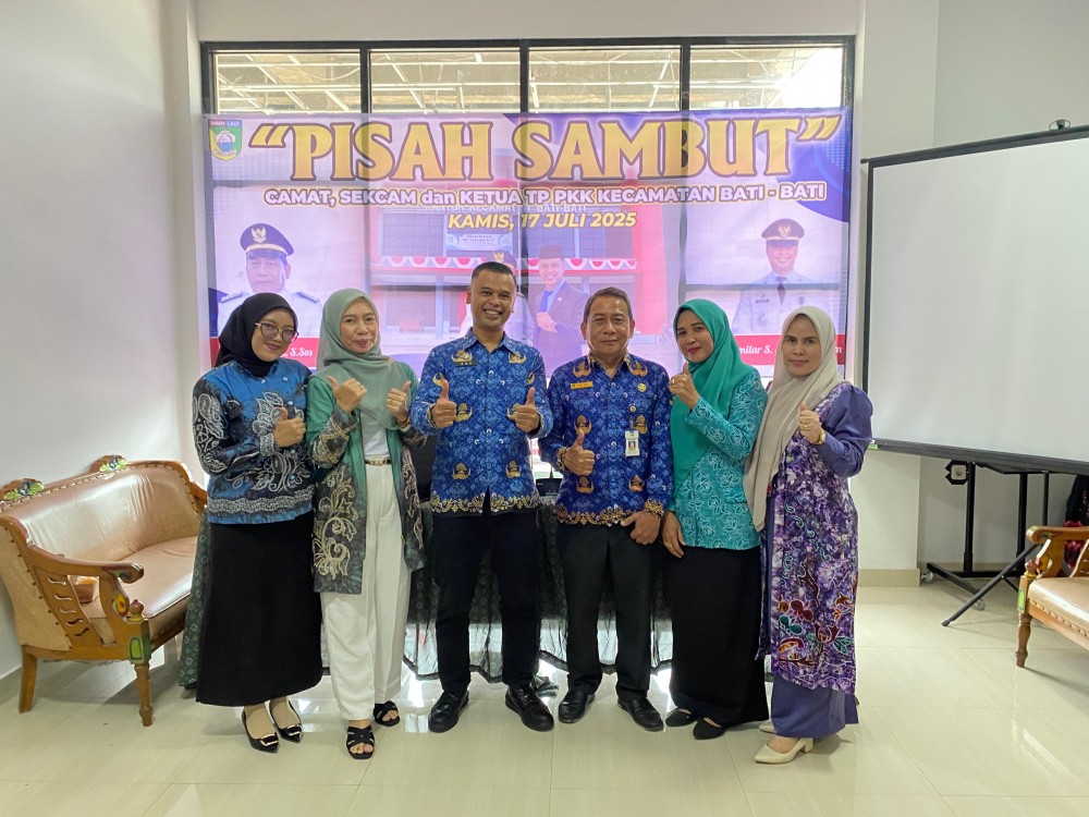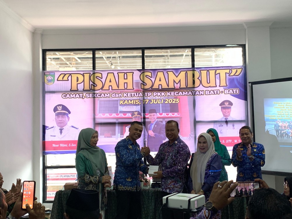 Bati-Bati - Kepala Desa dan Ketua TP PKK Desa hadiri Pisah Sambut Camat, Sekretaris Camat dan Ketua TP PKK Kecamatan Bati-Bati di Aula Kantor Kecamatan Bati-Bati. Kamis, 17 Juli 2025.