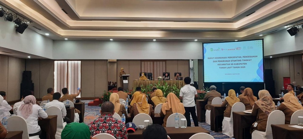 Banjarmasin - Kepala Desa mengikuti Rapat Koordinasi Percepatan, Pencegahan dan Penurunan Stunting Tingkat Kecamatan se-Kabupaten Tanah Laut Tahun 2025 di Hotel Rattan Inn. Selasa, 5 Agustus 2025.