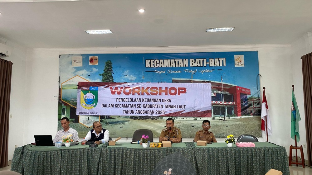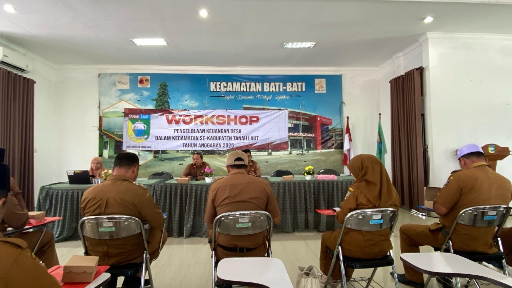 Bati-Bati - Kepala Desa, Ketua BPD dan Aparatur Pemerintah Desa Banyu Irang ikuti Workshop Pengelolaan Keuangan Desa Dalam Kecamatan se-Kabupaten Tanah Laut Tahun Anggaran 2025 yang dilaksanakan di Aula Kantor Kecamatan Bati-Bati. Selasa, 29 April 2025.
