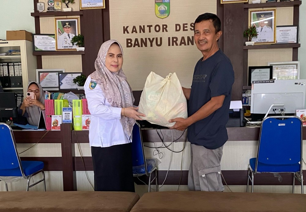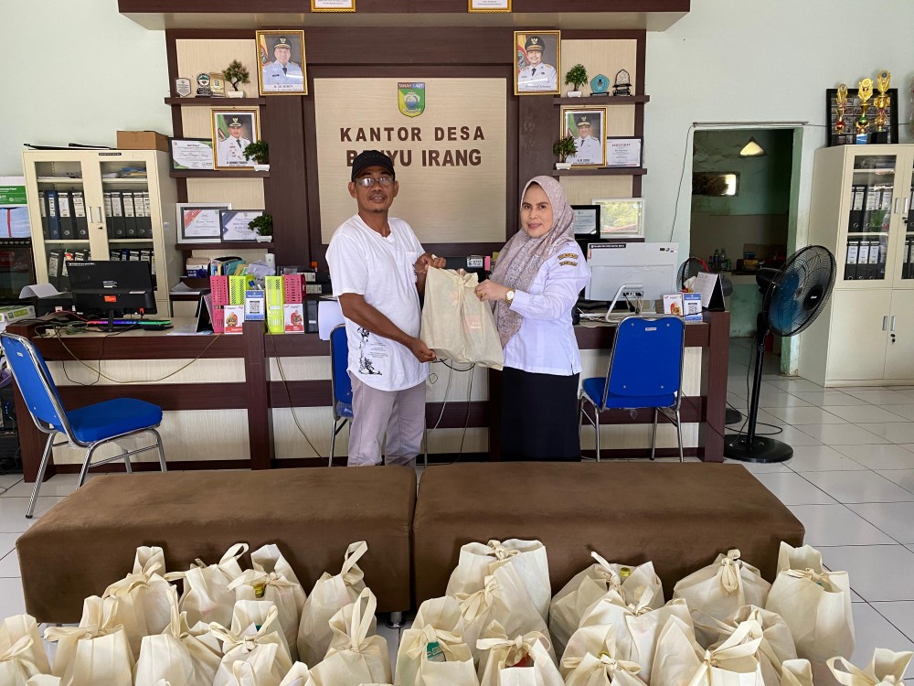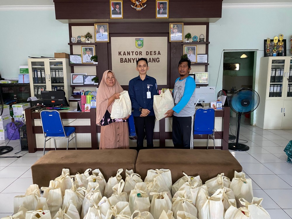 Selanjutnya paket lebaran ini diserahkan kepada para penerima di Kantor Desa Banyu Irang.