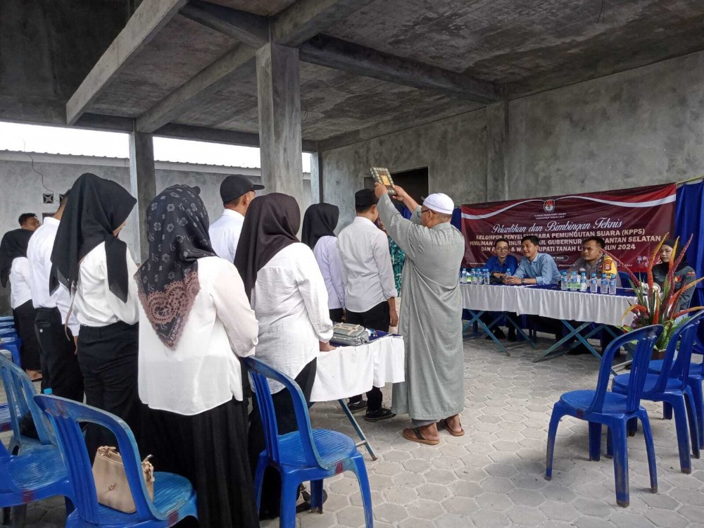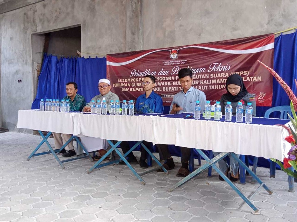 Panitia Pemungutan Suara (PPS) Desa Banyu Irang atas nama Komisi Pemilihan Umum (KPU) Kabupaten Tanah Laut melantik anggota Kelompok Penyelenggara Pemungutan Suara (KPPS) Desa Banyu Irang, Kecamatan Bati-Bati, Kabupaten Tanah Laut, Kalimantan Selatan, pada Kamis (7/11/2024) di Sekretariat Masjid Jami Al-Falah.
