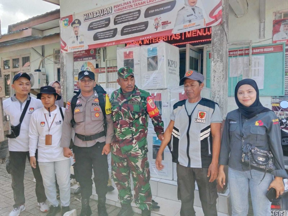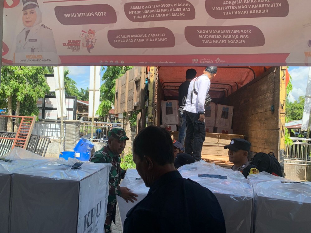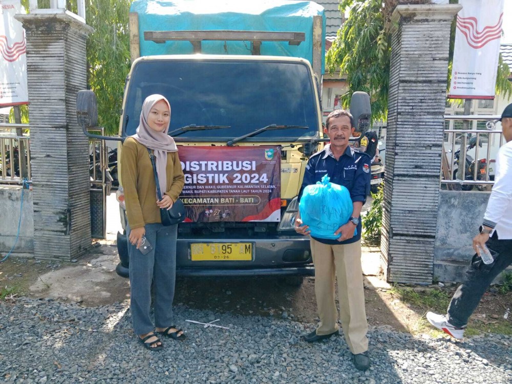 Komisi Pemilihan Umum (KPU) Kabupaten Tanah Laut mendistribusikan logistik pemilihan umum kepala daerah (Pilkada) tahun 2024 di Desa Banyu Irang. Selasa, 26 November 2024.