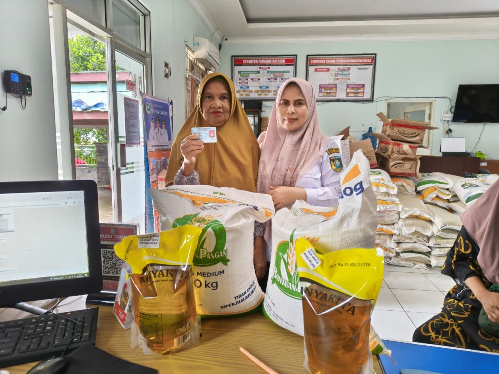 Banyu Irang - Dinas Sosial melalui Pemerintah Desa salurkan Bantuan Pangan Beras dan Minyak Goreng dari Badan Pangan Nasional Tahun 2025 .