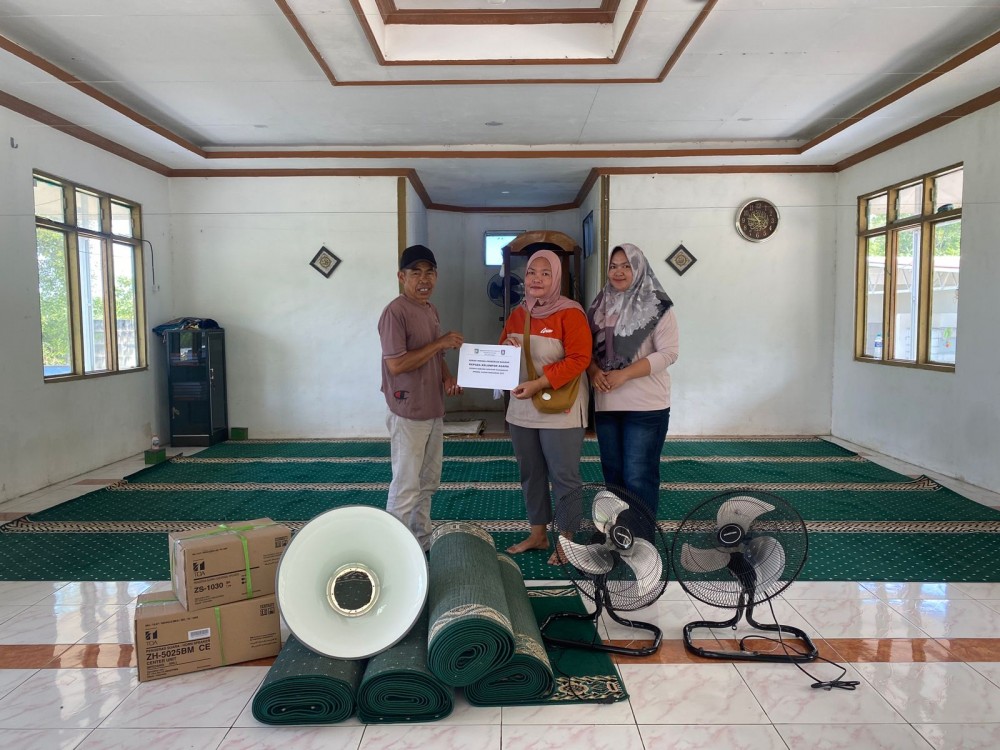 Adapun sarana dan prasarana yang diserahkan berupa 6 buah ambal/karpet sajadah, 2 buah kipas angin dan 1 set toa serta mikrifon.