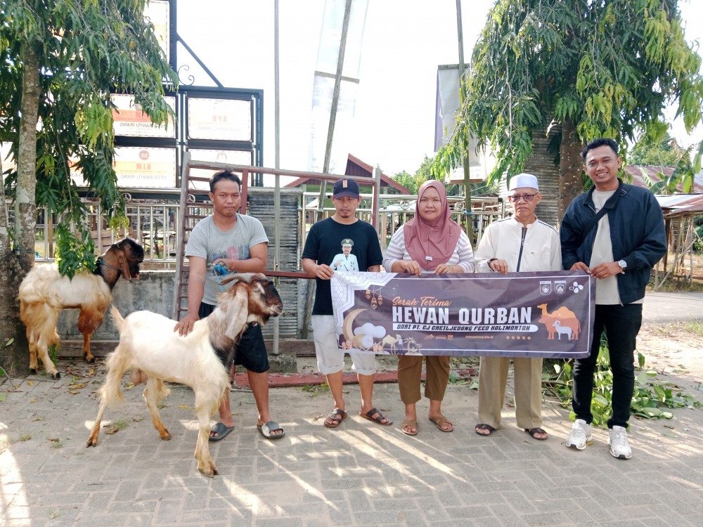 Banyu Irang - PT. CJ Cheiljedang Feed Kalimantan kembali salurkan Hewan Qurban berupa 3 (tiga) ekor kambing yang dilaksanakan di Halaman kantor Desa Banyu Irang. Jum'at 6 Juni 2025.