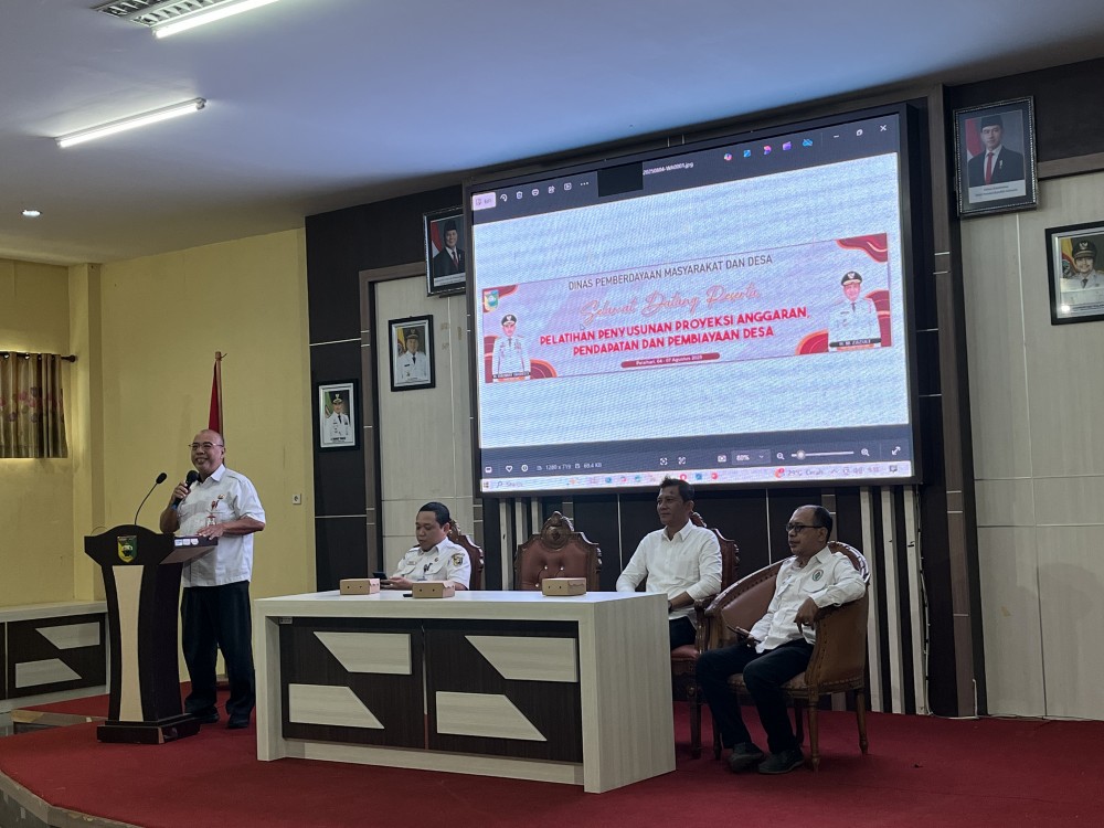 Kegiatan Pembukaan Pelatihan Proyeksi Anggaran Pendapatan, Belanja dan Pembiayaan Desa Angkatan II di buka oleh Kepala Dinas Pemberdayaan Masyarakat dan Desa (H. Bambang Kusudarisman, S.IP., M.Si)