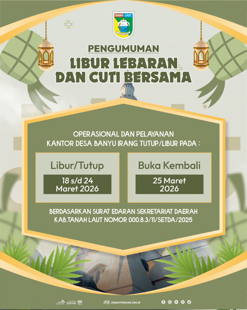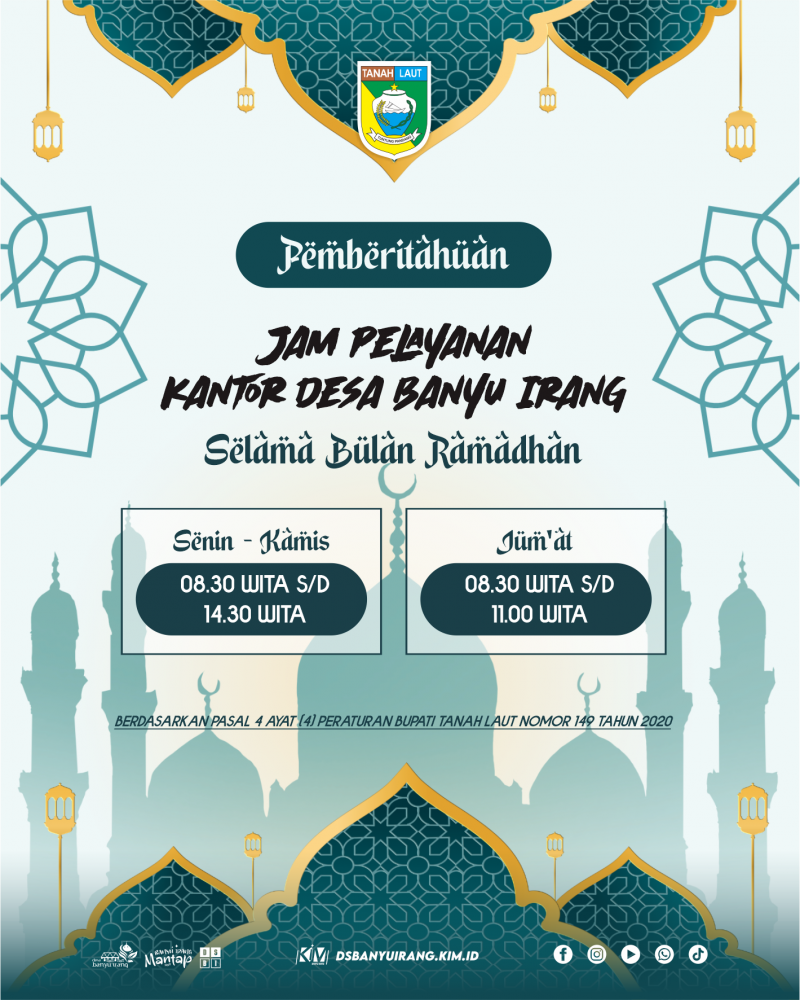 Pemberitahuan Jam Pelayanan Kantor Desa Banyu Irang selama bulan Ramadhan 1447 Hijriyah